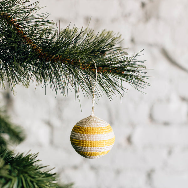 Striped Woven Ball Ornament - Yellow & Natural White Striped