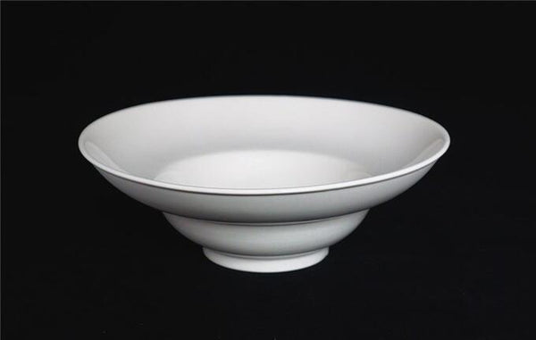 Plate, 30 oz. (900 ml), 12" dia. (30-1/2 cm), round, deep, rolled rim, dishwasher/microwave safe, ovenproof (up to 572°F/300°C), fully vitrified, fine porcelain, white.