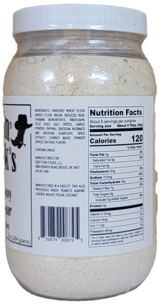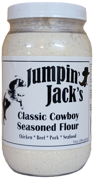 Jumpin' Jack's Classic Cowboy Seasoned Flour is a flavorful blend of flour and a unique mix of spices, perfect for adding a savory, Southwest-inspired kick to your cooking. Ideal for coating meats, vegies, or creating crispy fried dishes, this seasoned flour ensures a delicious, golden-brown crust with every use. Whether you're preparing chicken, pork, or onion rings, Jumpin' Jack's makes it easy to achieve mouth-watering results.