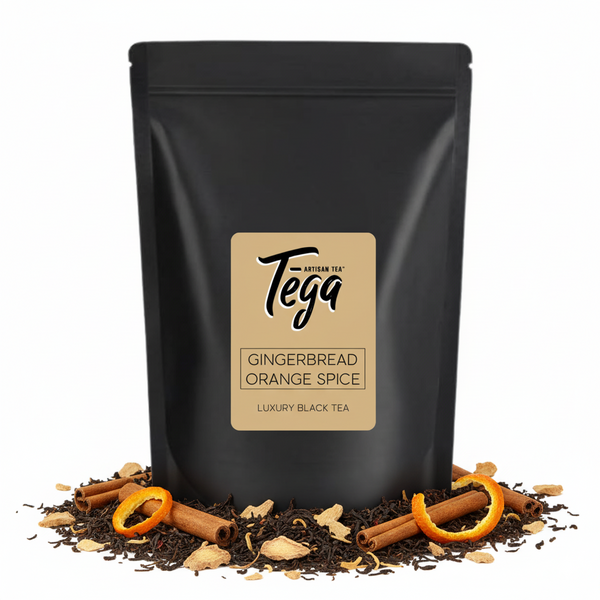 Discover the delightful fusion of Tega Tea's Gingerbread Orange Spice Black Tea, a luxurious blend featuring bold black tea, luscious ginger, sweet orange, and warming cinnamon. This vibrant tea shines bright in the cup with rich gingerbread and orange spice notes, creating a comforting and aromatic experience that will have you saying "Yes, Please!" with every sip.